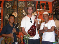 The coolest thing we found in Bali is a little music shop on Bemo Corner. It is run by Rudy and Augus, who design and make most of the instruments they sell. Rudy is a cross between Mr. Miyagi and Bob Marley. We got along instantly. I bought a few instruments that I couldn’t resist, including the world’s coolest ukulele. It has eight strings, is tuned like a guitar, sounds like a mandolin, and has a body carved into a face. It is the first one they have ever made, so they were happy when I promised to take care of it as I would my own child. They still made me pay, though.