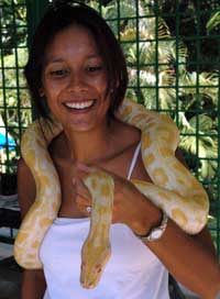 The next stop was at the Snake Sanctuary. To get into the park, you entered through the large cement jaws of a rattlesnake. To be perfectly honest, snakes are not my favorite animal. But somehow over the course of our visit I ended up with an albino python draped around my shoulders. It still makes me shiver to think about it! I may be smiling in the picture, but don’t be fooled! The park itself was a sad little place -- very under-funded, few animals, bad caging … etc. In one area, one of the snake keeper’s had even left out his keys to the snake cages! David try to enlist my help in freeing the snakes. But I think that we will have to leave that for another time!